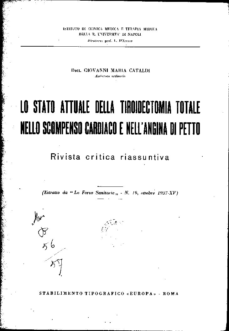 (Estratto da Le Forze Sanitarie,, N. 19, ottobre 1937 XV)