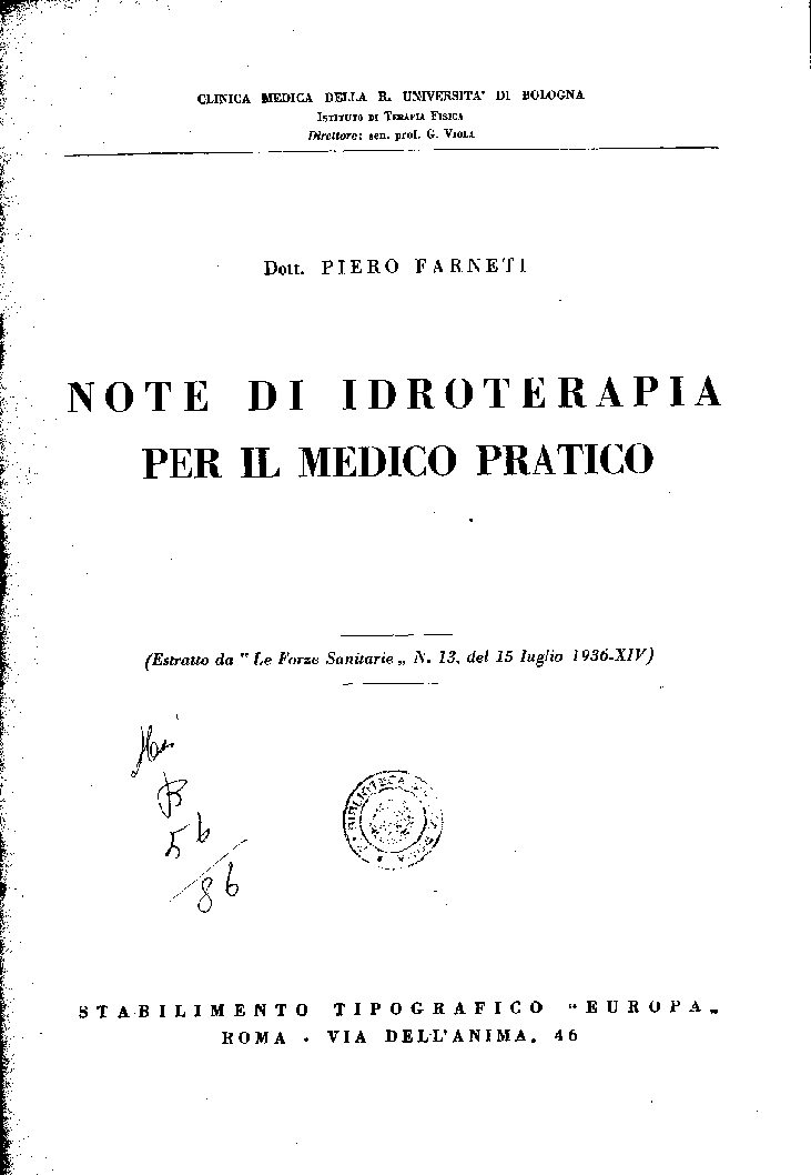 (Estratto da Le Forze Sanitarie,, N. 13, del 15 luglio 1936 XIV)