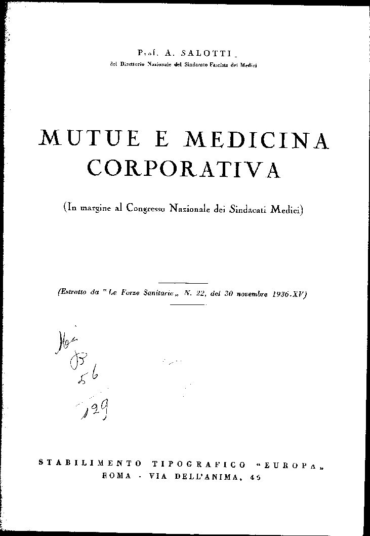 (Estratto da Le Forze Sanitarie,, N. 22, del 30 novembre 1936 -XV)