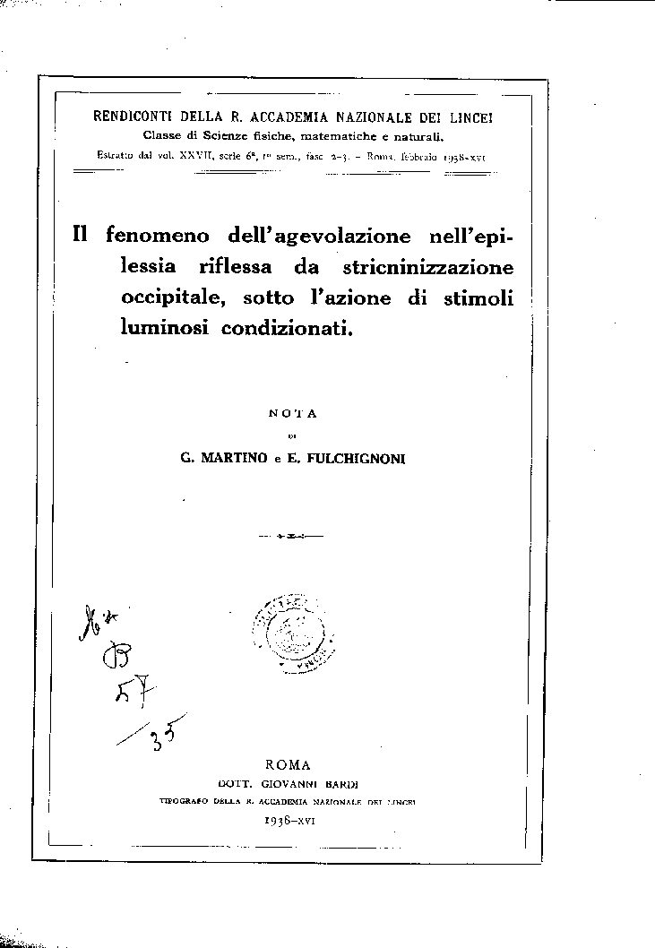 Estratto dal vol. XXVII, serie 6a, 1° sem.., fasc. 2-3. – Roma, febbraio 1938-XVI