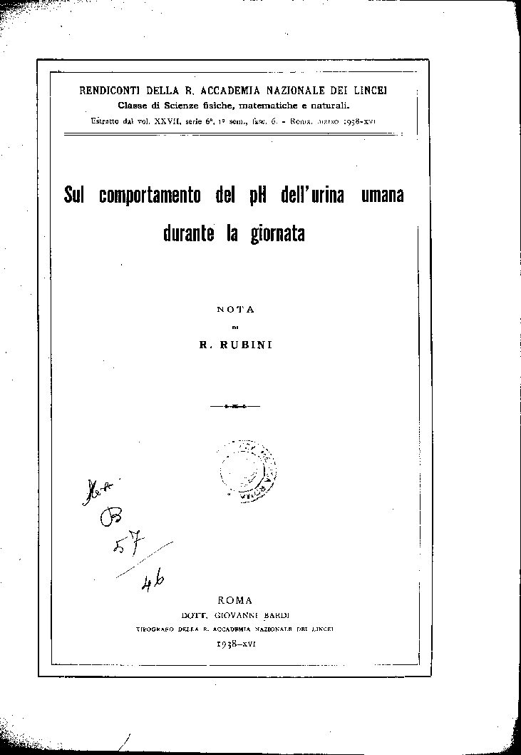 Estratto dal vol. XXVII, serie 6a, 1° sem.., fasc. 6. – Roma, marzo 1938-XVI
