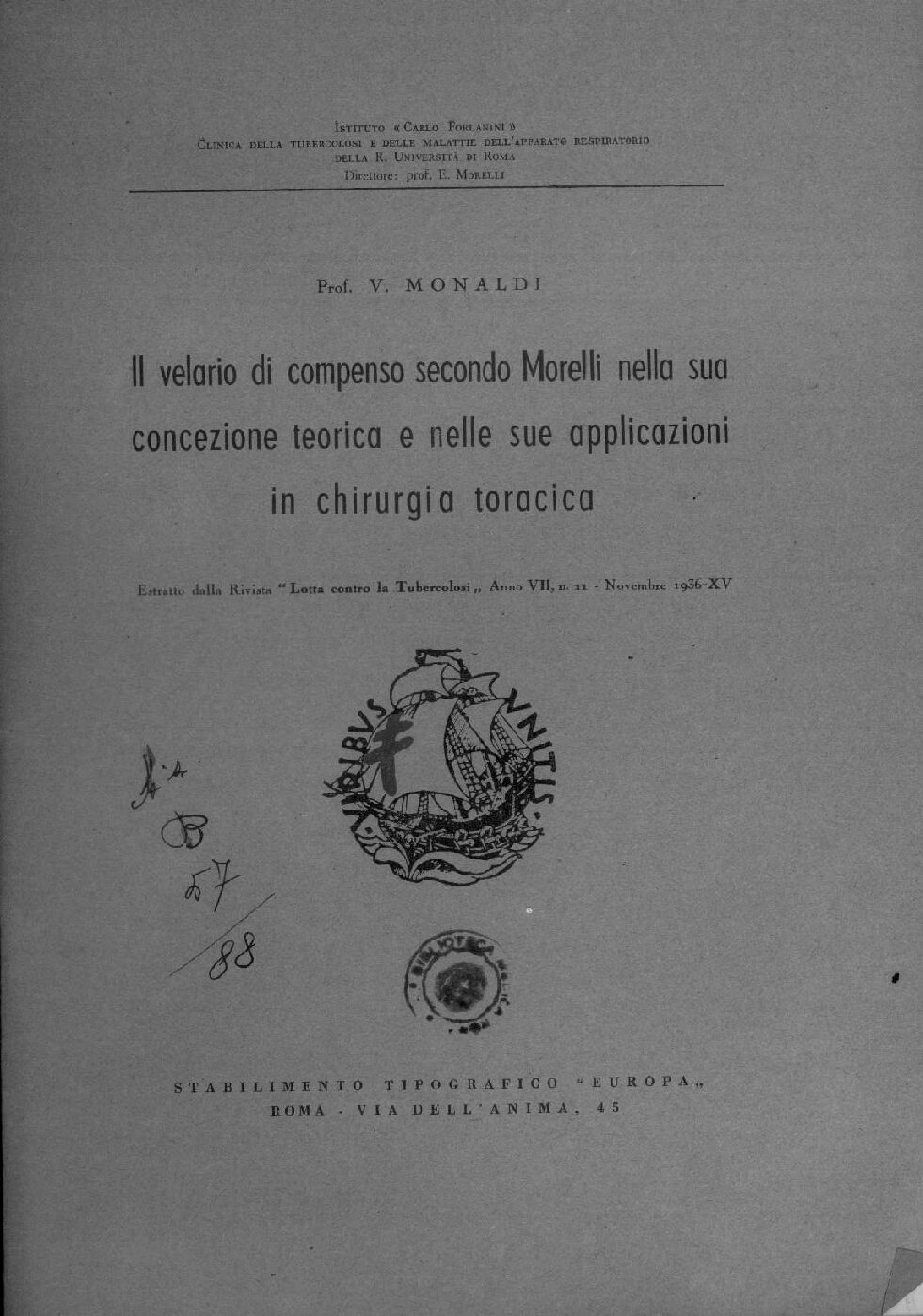 Estratto dalla Rivista Lotta contro la Tubercolosi Anno VII, n. 11 Novembre 1936-XV