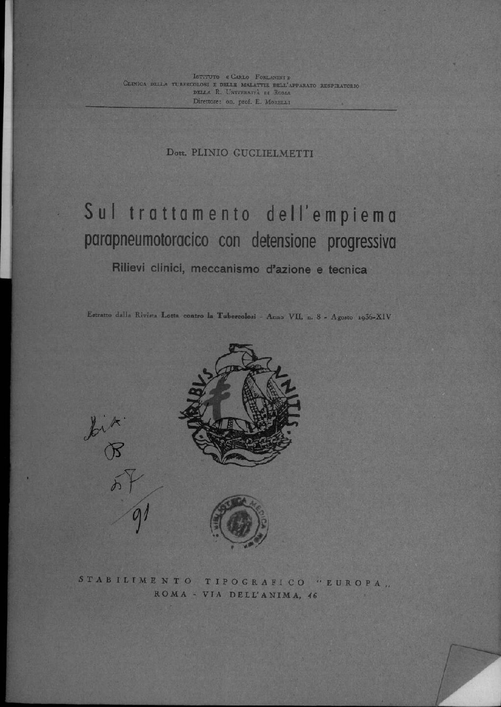 Estratto dalla Rivista Lotta contro la Tubercolosi Anno VII, n. 8 Agosto 1936-XIV