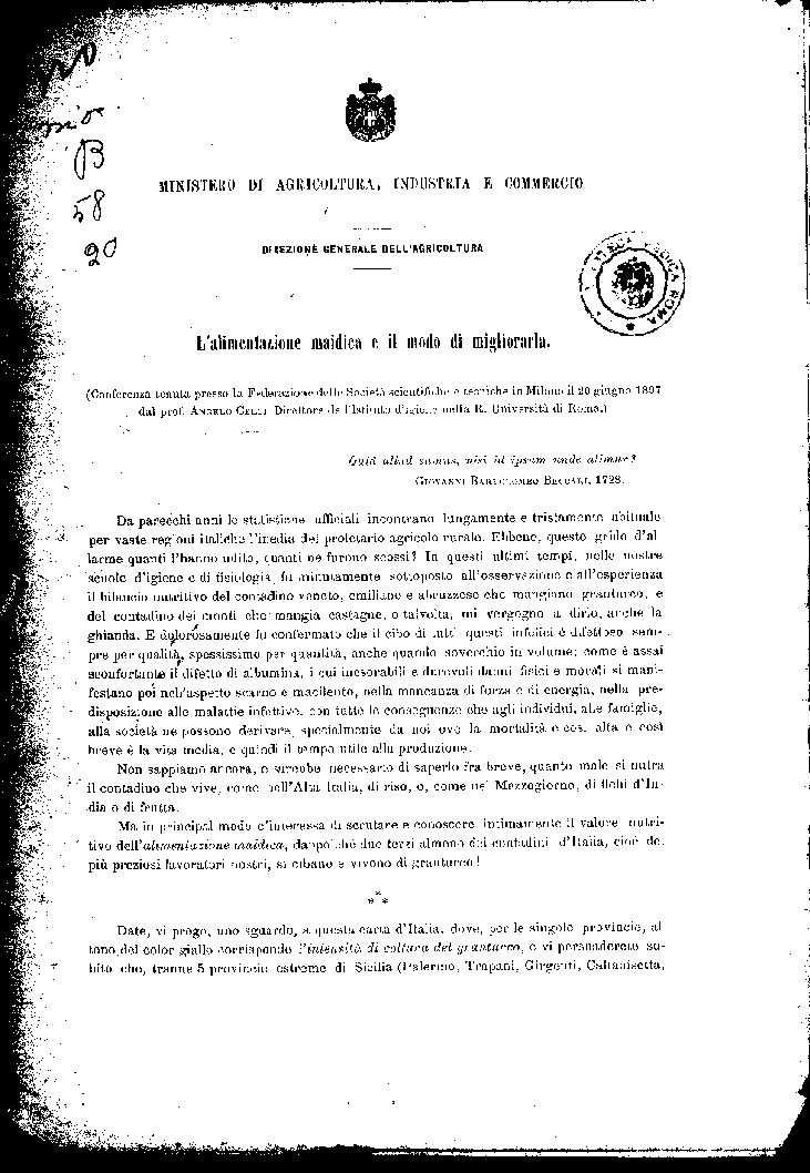 (Conferenza tenuta presso la Federazione delle Società scientifiche e tecniche in Milano il 20 giugno 1897 dal prof. ANGELO CELLI, Direttore dell Istituto d igiene nella R. Università di Roma.)