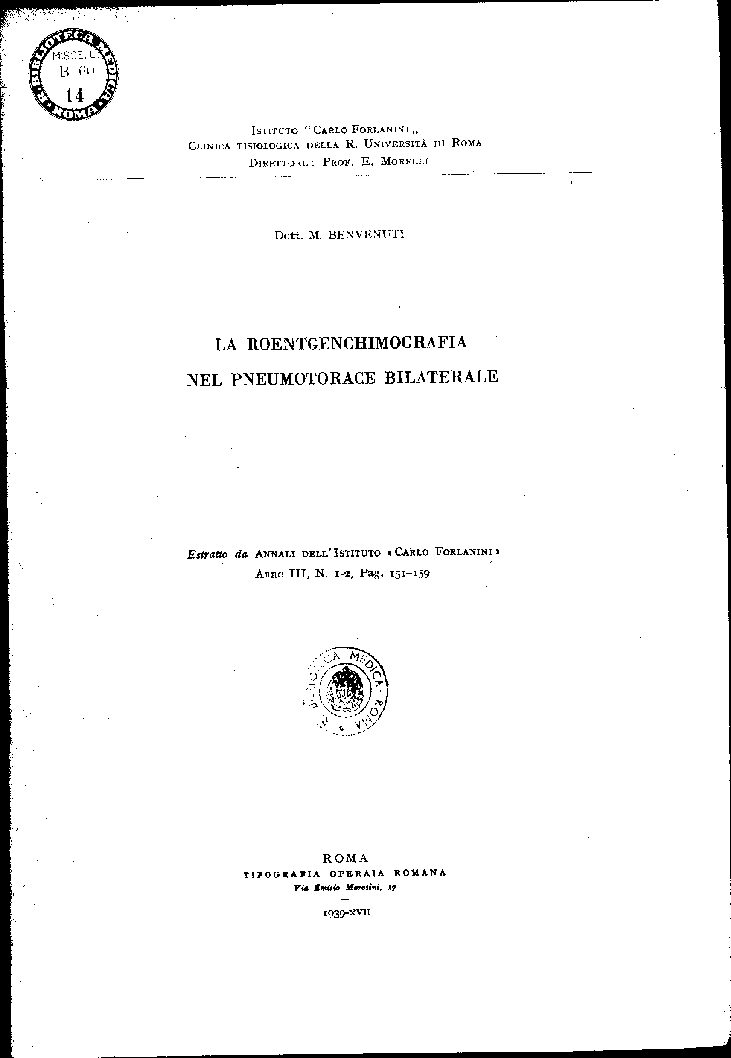 CLINICA TISIOLOGICA DELLA R. UNIVERSITÀ DI ROMA