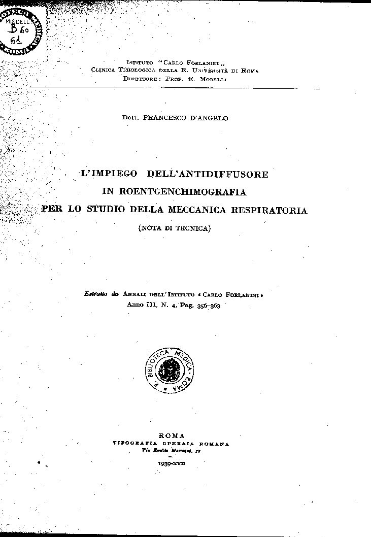 CLINICA TISIOLOGICA DELLA R. UNIVERSITÀ DI ROMA