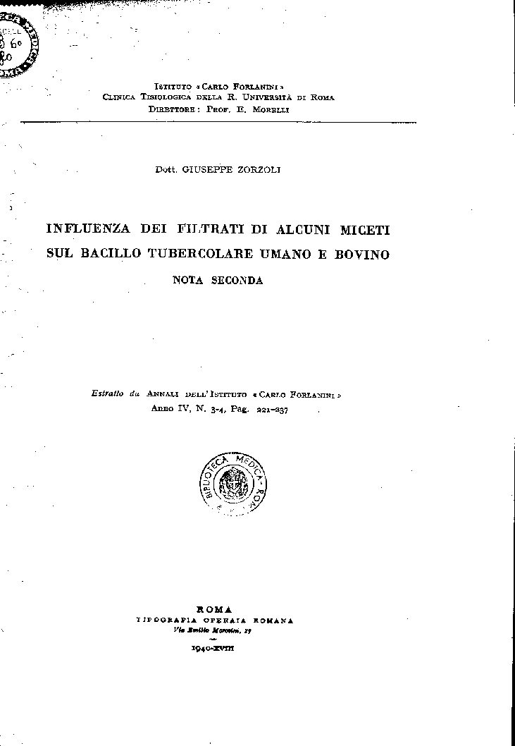 CLINICA TISIOLOGICA DELLA R. UNIVERSITÀ DI ROMA