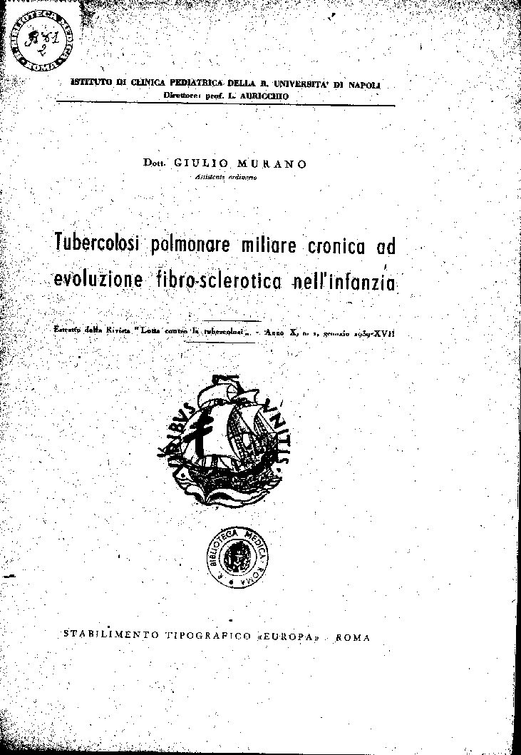 Estratto dalla Rivista “Lotta contro la tubercolosi” – Anno X, n. 1 gennaio 1939-XVII
