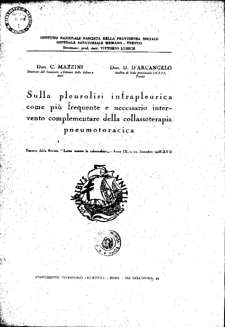 Estratto dalla Rivista “Lotta contro la tubercolosi” – Anno X, n. 12 dicembre 1938-XVII