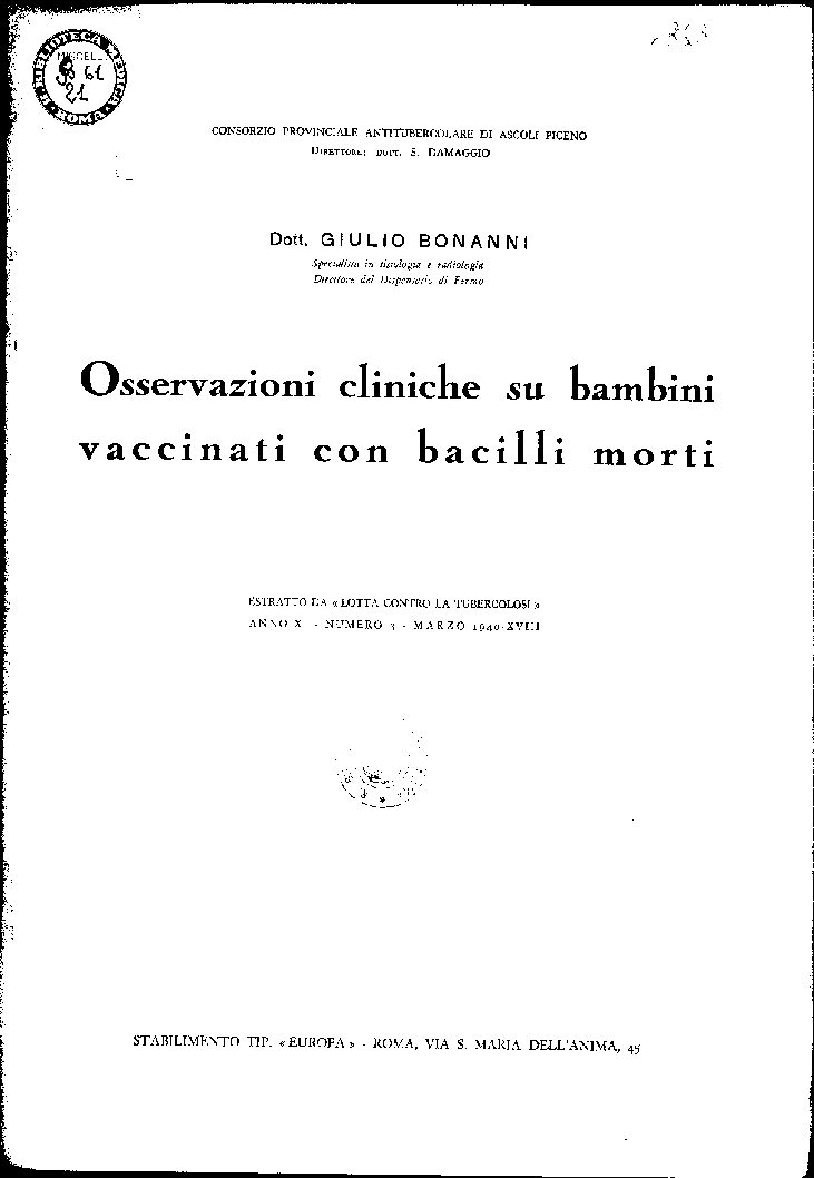 ESTRATTO DA ” LOTTA CONTRO LA TUBERCOLOSI ”