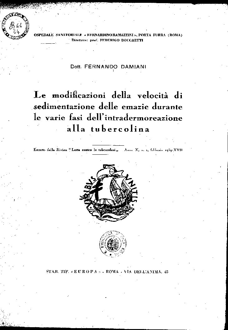 OSPEDALE SANATORIALE ” BERNARDINO RAMAZZINI “, PORTA FURBA (ROMA)