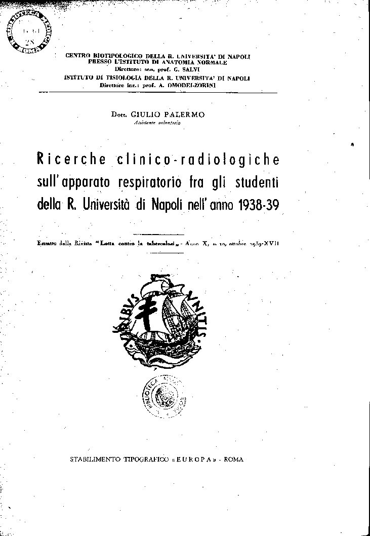 ISTITUTO DI TISIOLOGIA DELLA R. UNIVERSITÀ DI NAPOLI