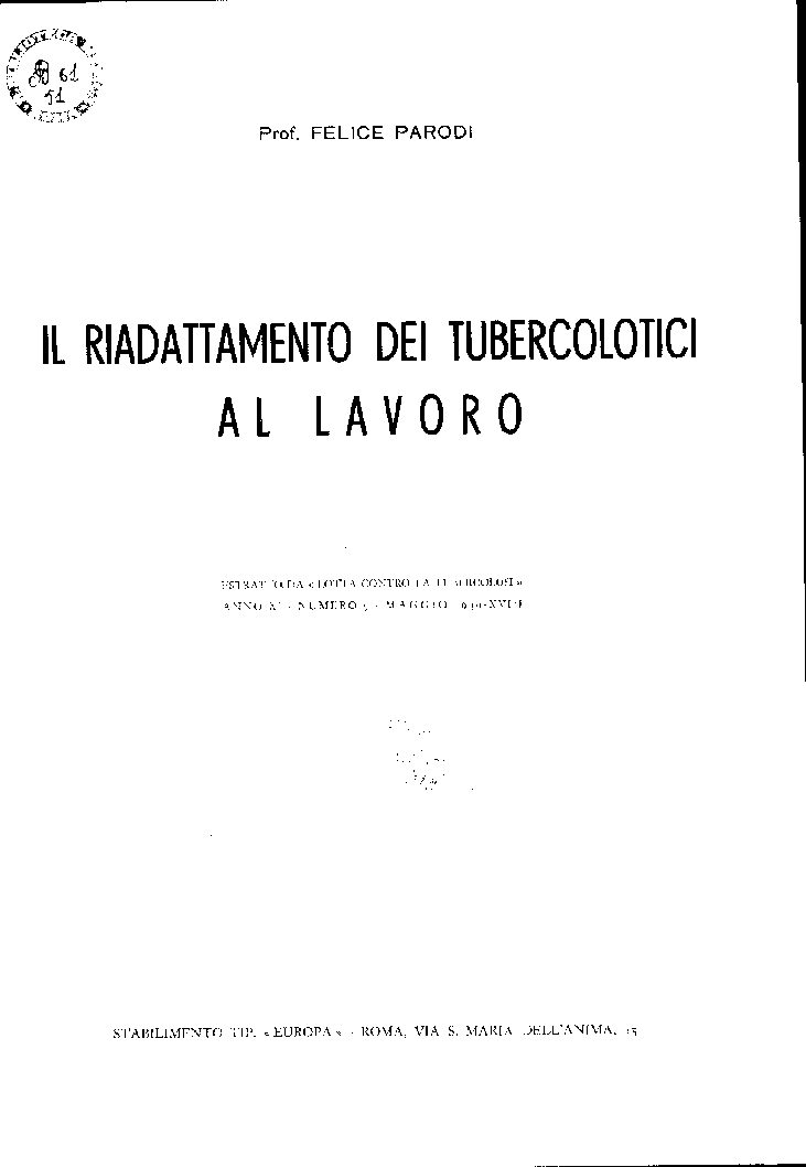 ESTRATTO DA ” LOTTA CONTRO LA TUBERCOLOSI ”