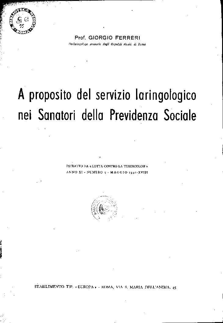 ESTRATTO DA ” LOTTA CONTRO LA TUBERCOLOSI ”