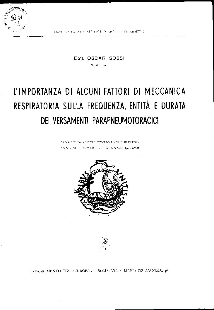 TTO DA “LOTTA CONTRO LA TUBERCOLOSI ”