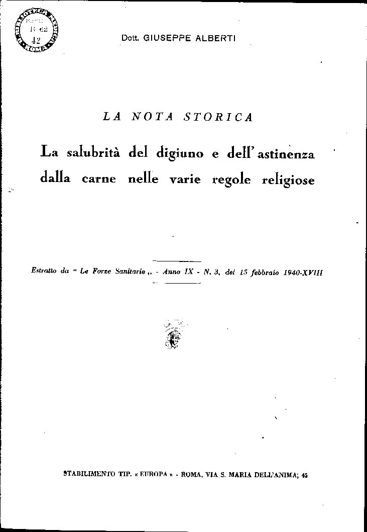 Estratto da “Le Forze Sanitarie” – Anno IX – N. 3, del 15 febbraio 1940-XVIII