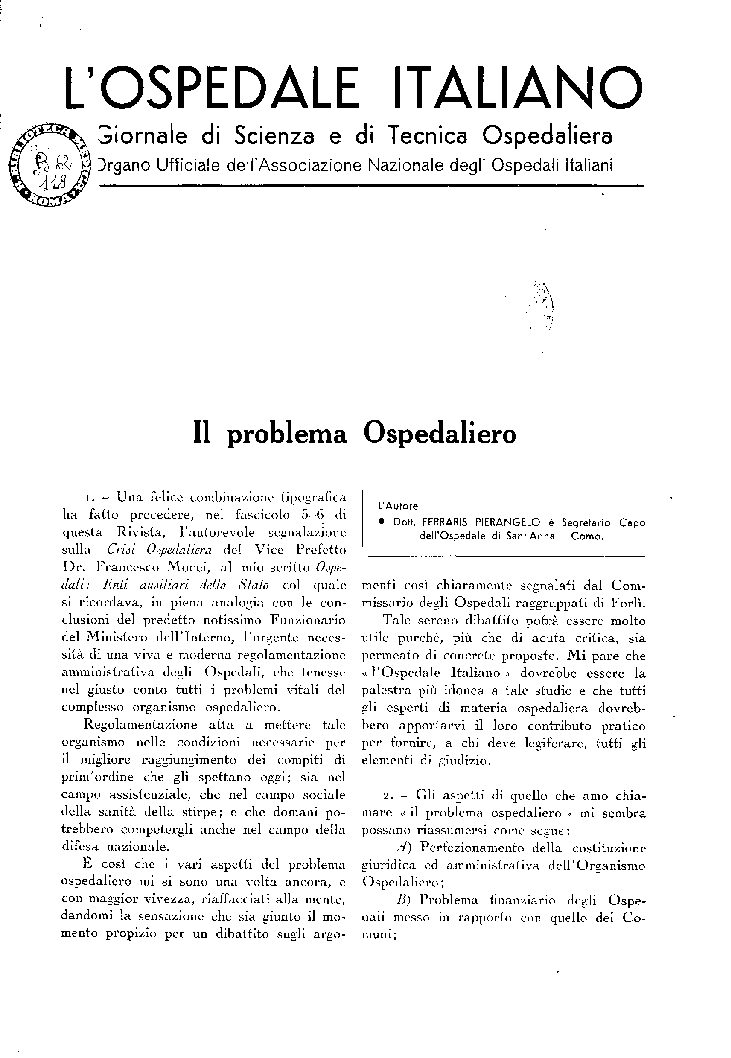 Organo Ufficiale dell’Associazione Nazionale degli Ospedali Italiani