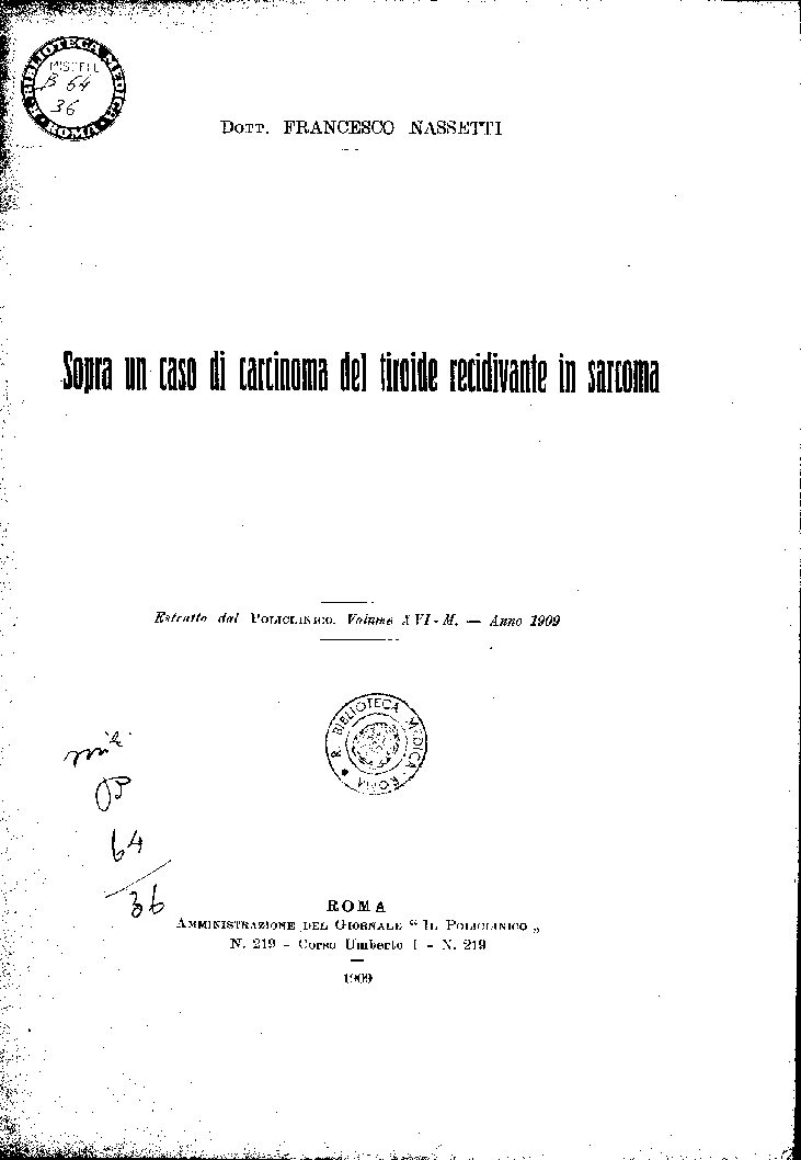 Sopra un caso di carcinoma del tiroide recidivante in sarcoma