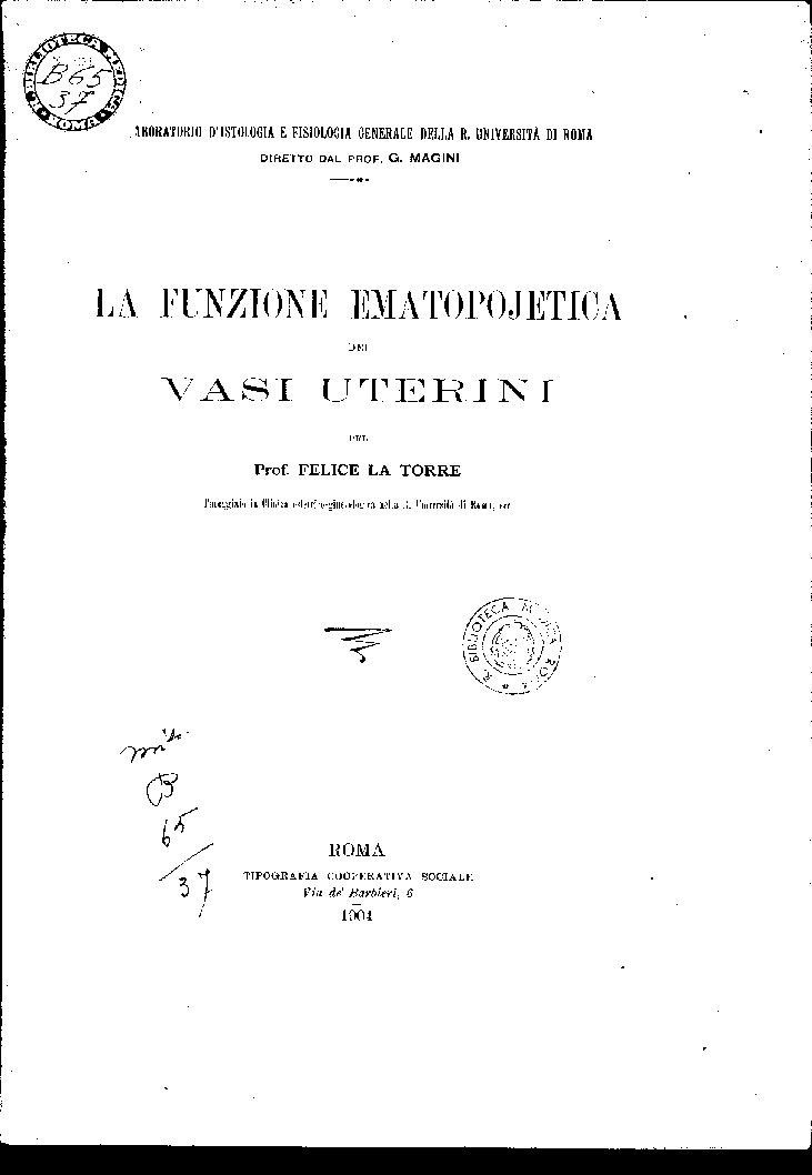 ABORATORIO D’ISTOLOGIA E FISIOLOGIA GENERALE DELLA R. UNIVERSITÀ DI ROMA