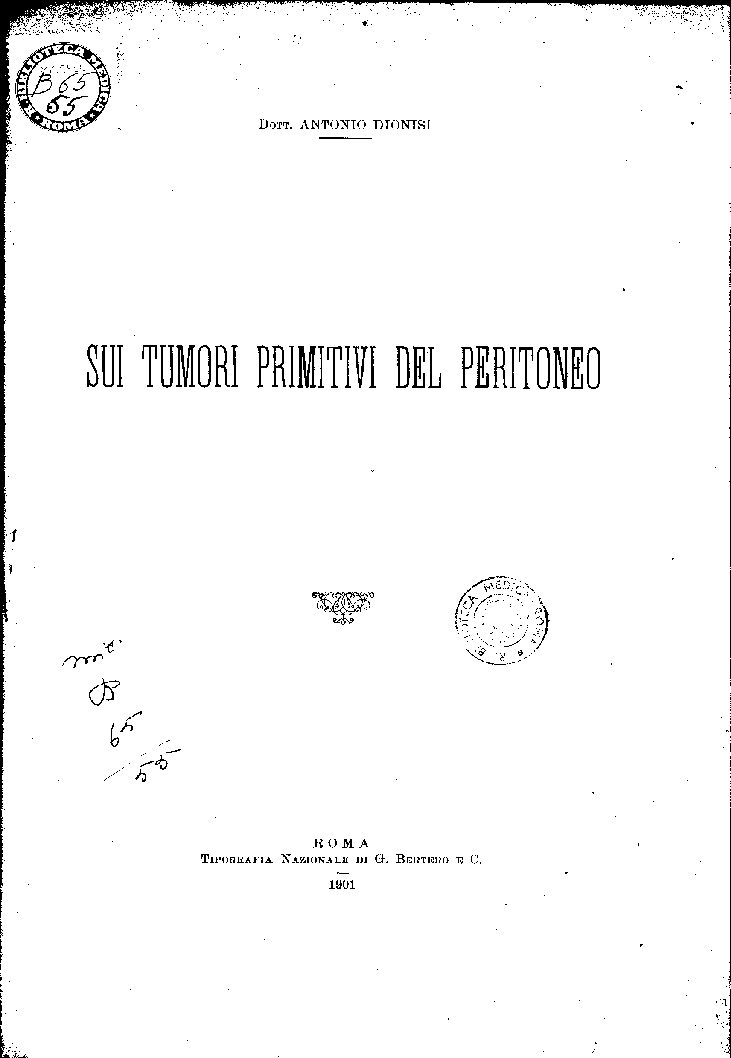 SUI TUMORI PRIMITIVI DEL PERITONEO