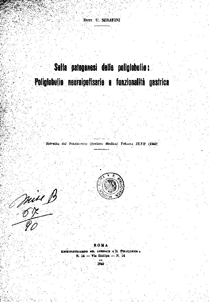 Estratto dal POLICLINICO (Sezione Medica) Volume XLVII (1940)