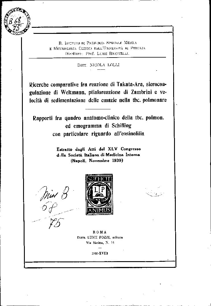 R. ISTITUTO DI PATOLOGIA SPECIALE MEDICA