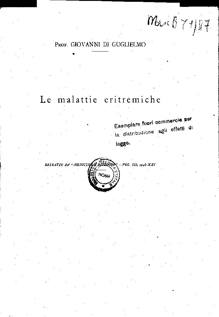 ESTRATTO DA “MEDICINA E BIOLOGIA”-VOL. III, 1943-XXI