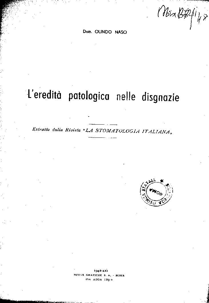 Estratto dalla Rivista ” LA STOMATOLOGIA ITALIANA ”