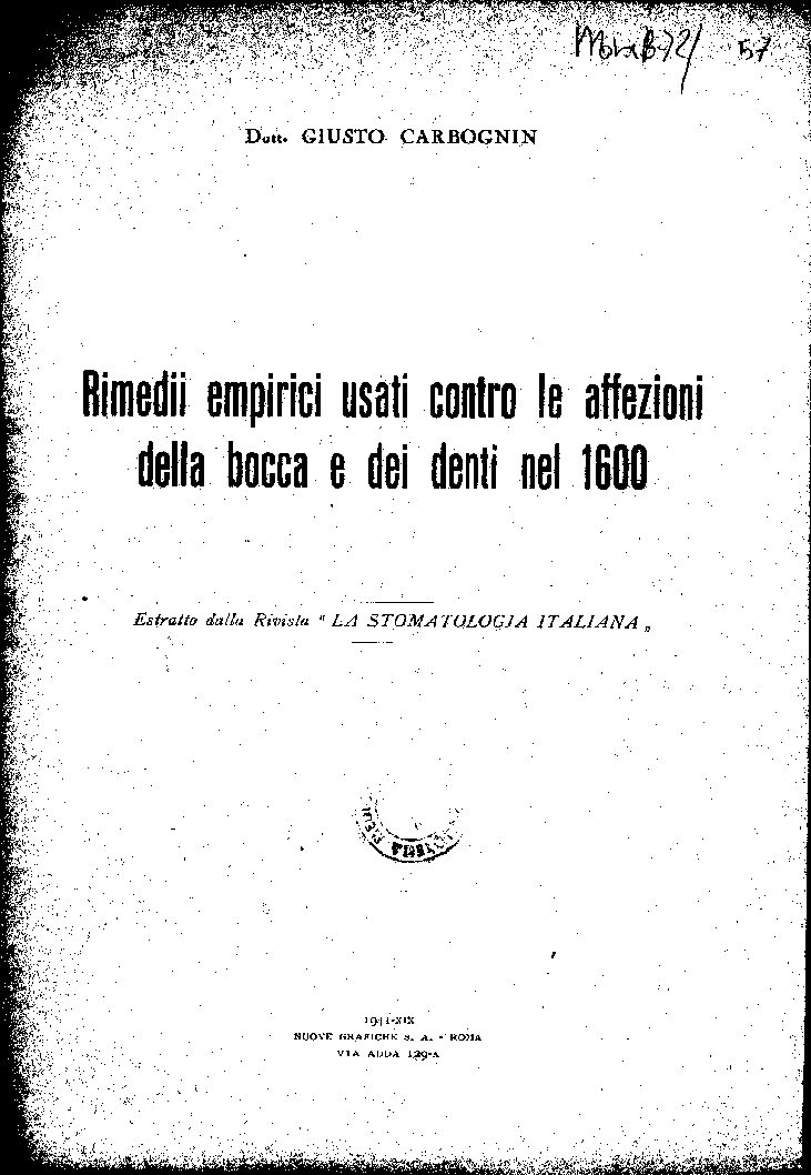 Estratto dalla Rivista ” LA STOMATOLOGIA ITALIANA ,,