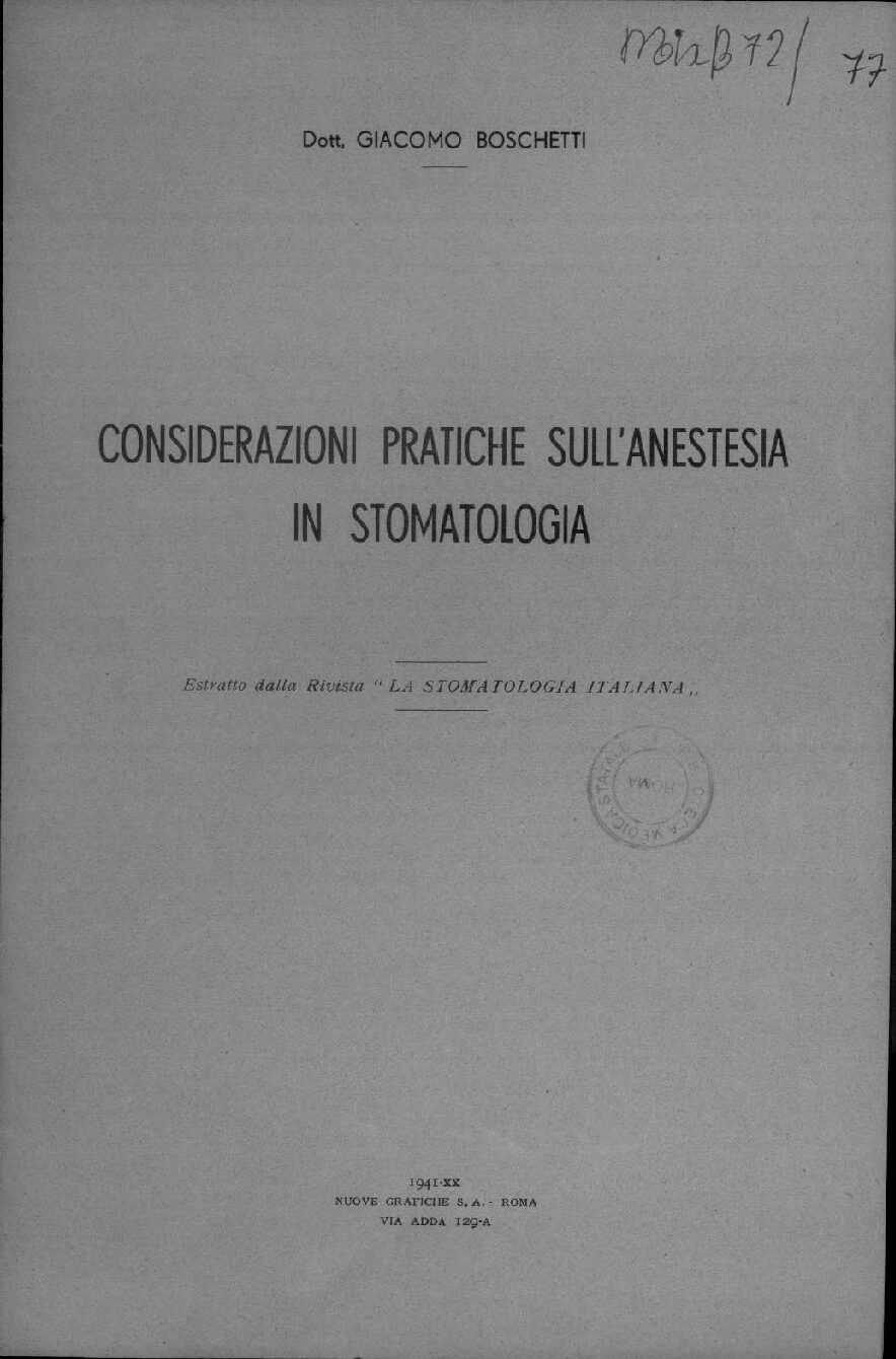 Estratto dalla Rivista ” LA STOMATOLOGIA ITALIANA ,,