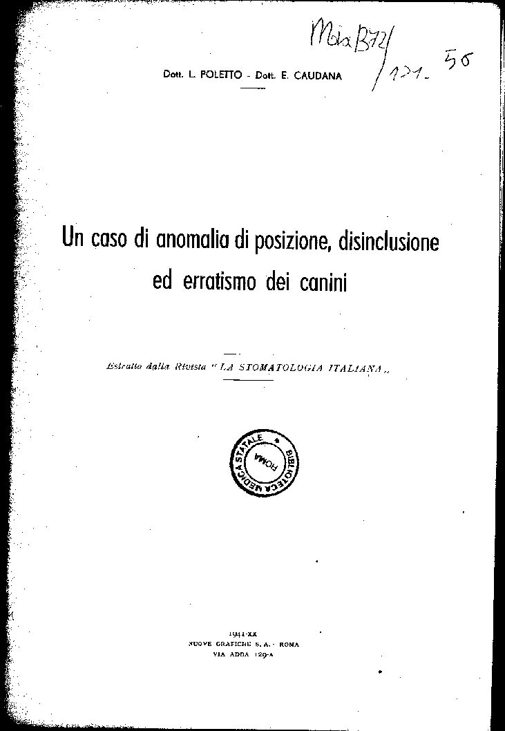 Estratto dalla Rivista “LA STOMATOLOGIA ITALIANA”