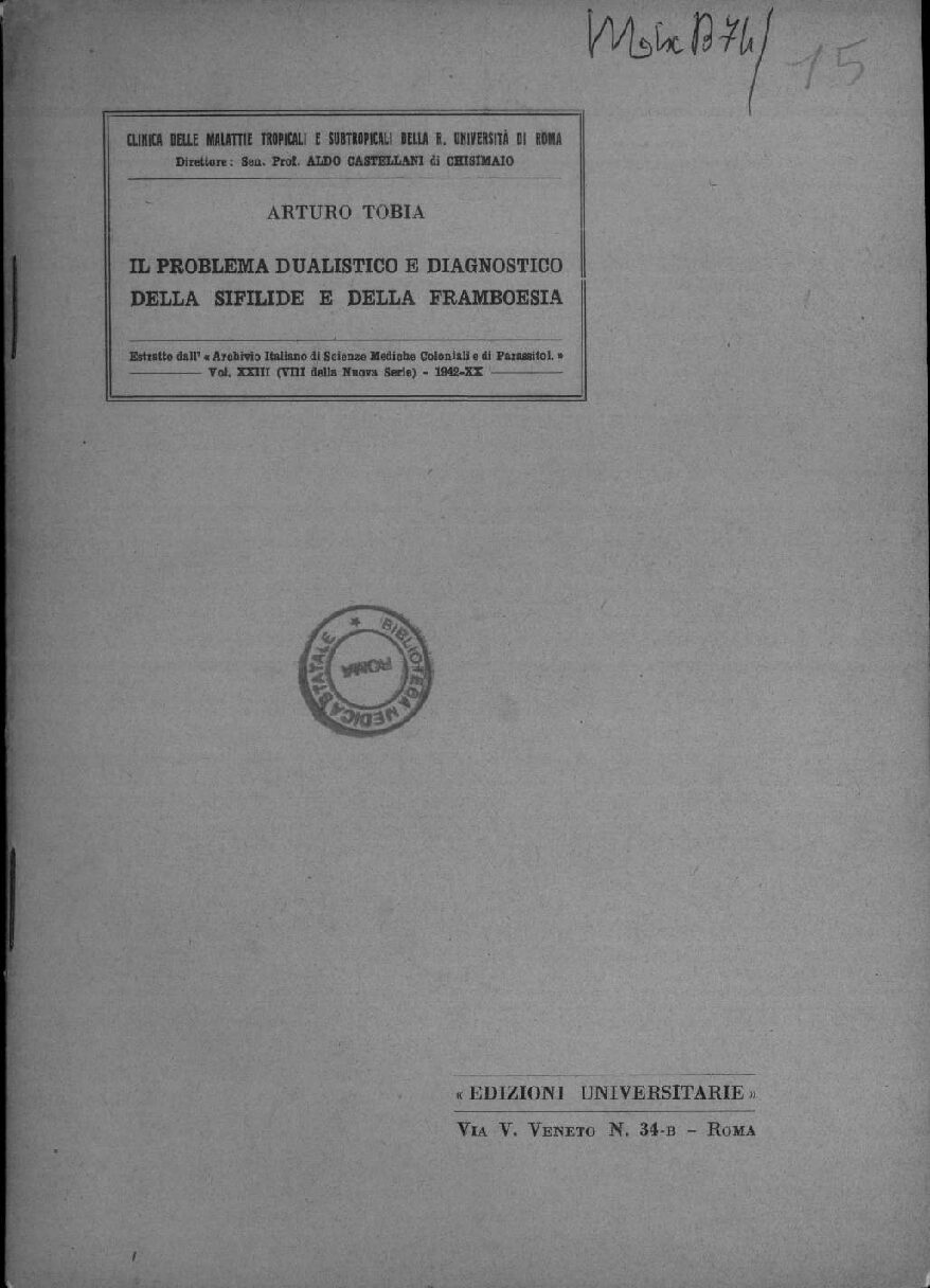 dall’ Areblvlo di Scienze Mediche Coloniall di tol.>>