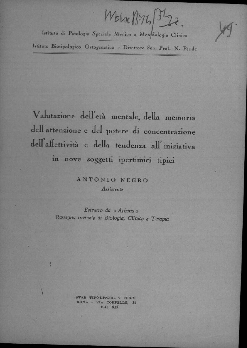 Istituto Biotipologica Ortogenetico – Direttore Sen. Prof. N. Pende