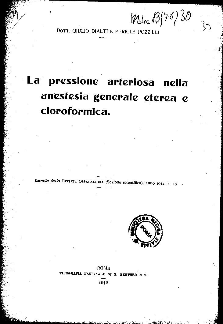 Estratto dalla RIVISTA OSPEDALIERA (Sezione scientifica), anno I9I2, n 15