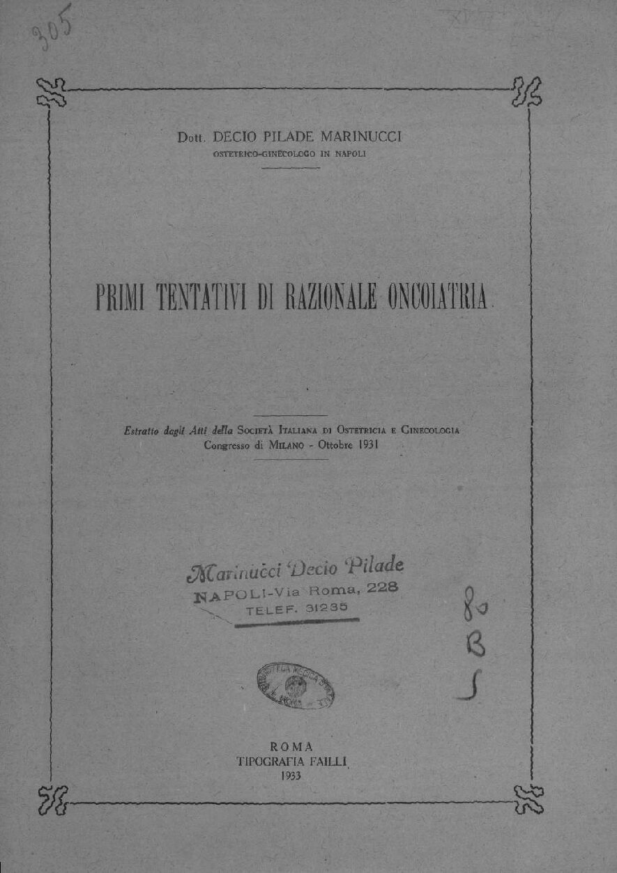 PRIMI TENTATIVI DI RAZIONALE ONCOIATRIA